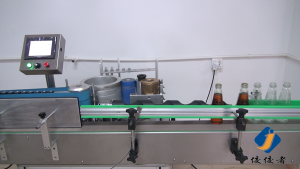 將瓶子放到上糊貼標(biāo)機(jī)的傳送帶上,按顯示屏上的開始按鈕,機(jī)器便開始工作了,瓶子排列在傳送帶上,由于后面貼標(biāo)位置的出標(biāo)是有一定頻率的,人工估算又非常不準(zhǔn)確,那么如何才能配合這個(gè)出標(biāo)頻率呢?請先看下圖: