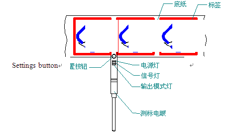 二、將有標簽的地方置于電眼的槽里面,持續(xù)按住調(diào)整按鈕3秒鐘左右,可以看到電眼的黃色信號燈閃爍,然后松開按鈕,將沒有標簽的地方(只有標簽的底紙)置于電眼槽內(nèi),持續(xù)按住調(diào)整按鈕8秒鐘,然后松開按鈕,此時,設(shè)置完成。