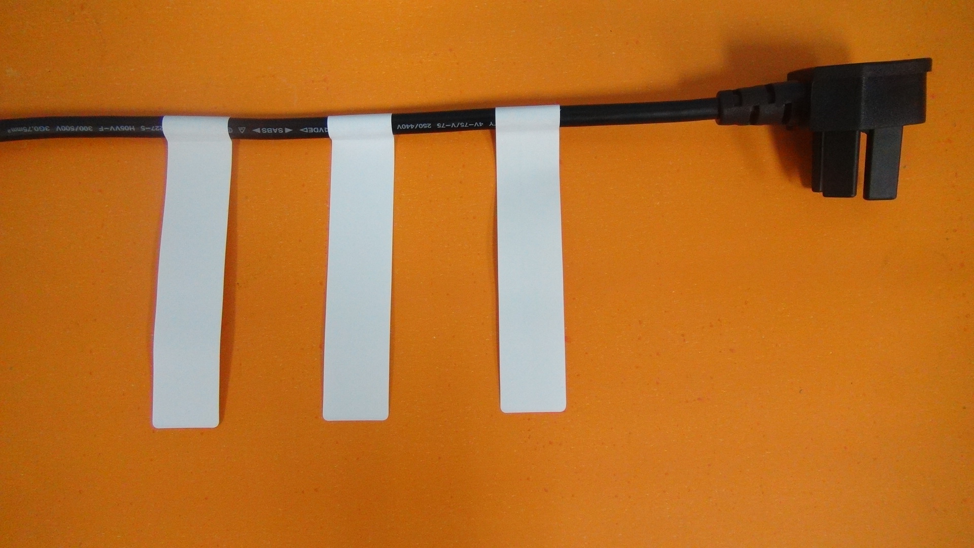 上圖:樣品五.上圖中的這個(gè)圖片是在研發(fā)過程中,對(duì)三角插頭和二角插頭以及鋁電線進(jìn)行貼標(biāo)的樣品集合拍攝的圖片.