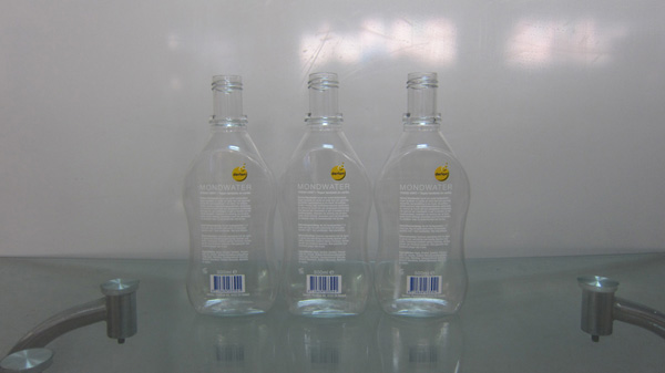 上圖是塑料瓶貼標機對凹面塑料瓶貼標后的樣品。